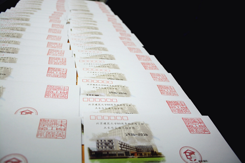 土木学院的校庆特版首日封打破传统形式,将学院院徽以纯手工的方式盖在每一张首日封邮票的位置上以代替邮票。