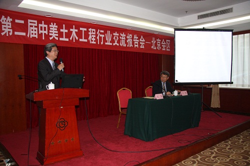 在交流会上,海外华人土木工程协会南加州分会会长张晓哲博士首先对海外华人土木工程协会(OCCSEA)进行了讲解,介绍了协会2014年-2015年的活动事纪。海外华人土木工程协会总会副会长北奥作了“美国建筑造价管理及其分类”的报告。海外华人土木工程协会总会秘书长李大成作了“美国工程合约介绍”的报告。北京市市政工程设计研究总院有限公司第四设计所副总工程师朱江作了“地下环形隧道在城市重点功能区的应用研究”的报告。北京市建筑设计研究院副总工程师、教授级高级工程师束伟农作了“北京新机场航站楼结构设计介绍”和“中国尊大厦结构设计介绍”的报告。北京市建筑设计研究院副总工程师、教授级高级工程师孙宏伟作了“北京中国尊大厦基础工程实践”的报告。海外华人土木工程协会南加州分会秘书长王立杰作了“全方位道路设计与实例介绍”的报告。