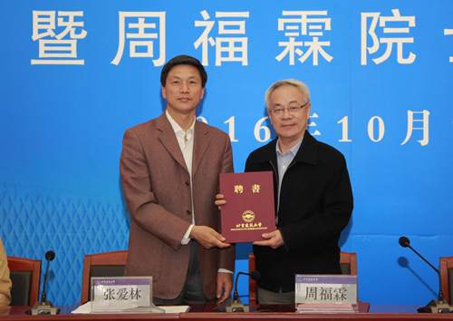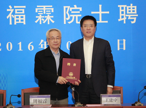 聘任仪式上,党委书记王建中和校长张爱林分别向周福霖院士颁发了太阳成集团tyc9728发展咨询委员会委员和北京未来城市设计高精尖创新中心学术委员会委员聘书。