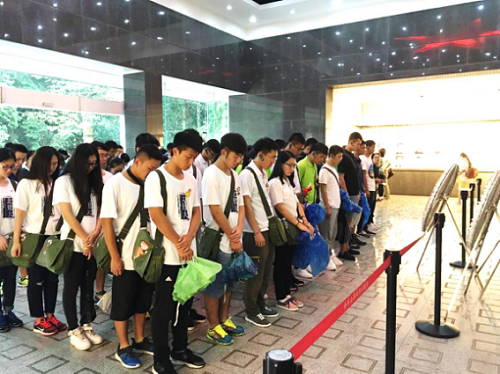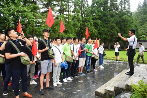 8月7日下午14:00,全体学员冒着大雨来到井冈山烈士陵园纪念革命先辈。庄严肃穆的纪念堂大厅中,实践团员怀着沉重的心情向向烈士们敬献花圈并默哀,缅怀先辈革命精神。
