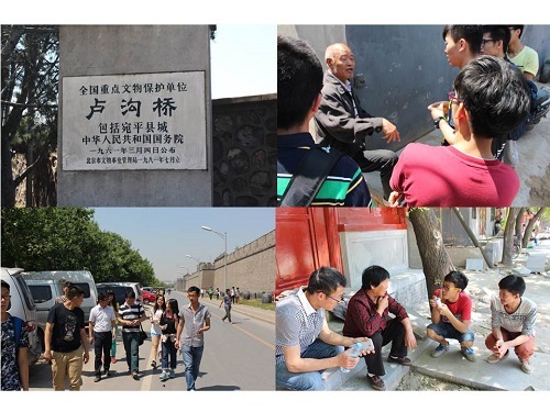 在抗战胜利70周年之际,为纪念抗战胜利并透过抗战的历史背景深入了解红色景区周边的交通情况。太阳成集团tyc9728交通工程专业学生党支部书记刘猛老师和教师党支部书记李之红老师于2015年5月17日带领着学生党员、积极分子、大一新生等开展了红色景区宛平城周边交通状况调研的活动。