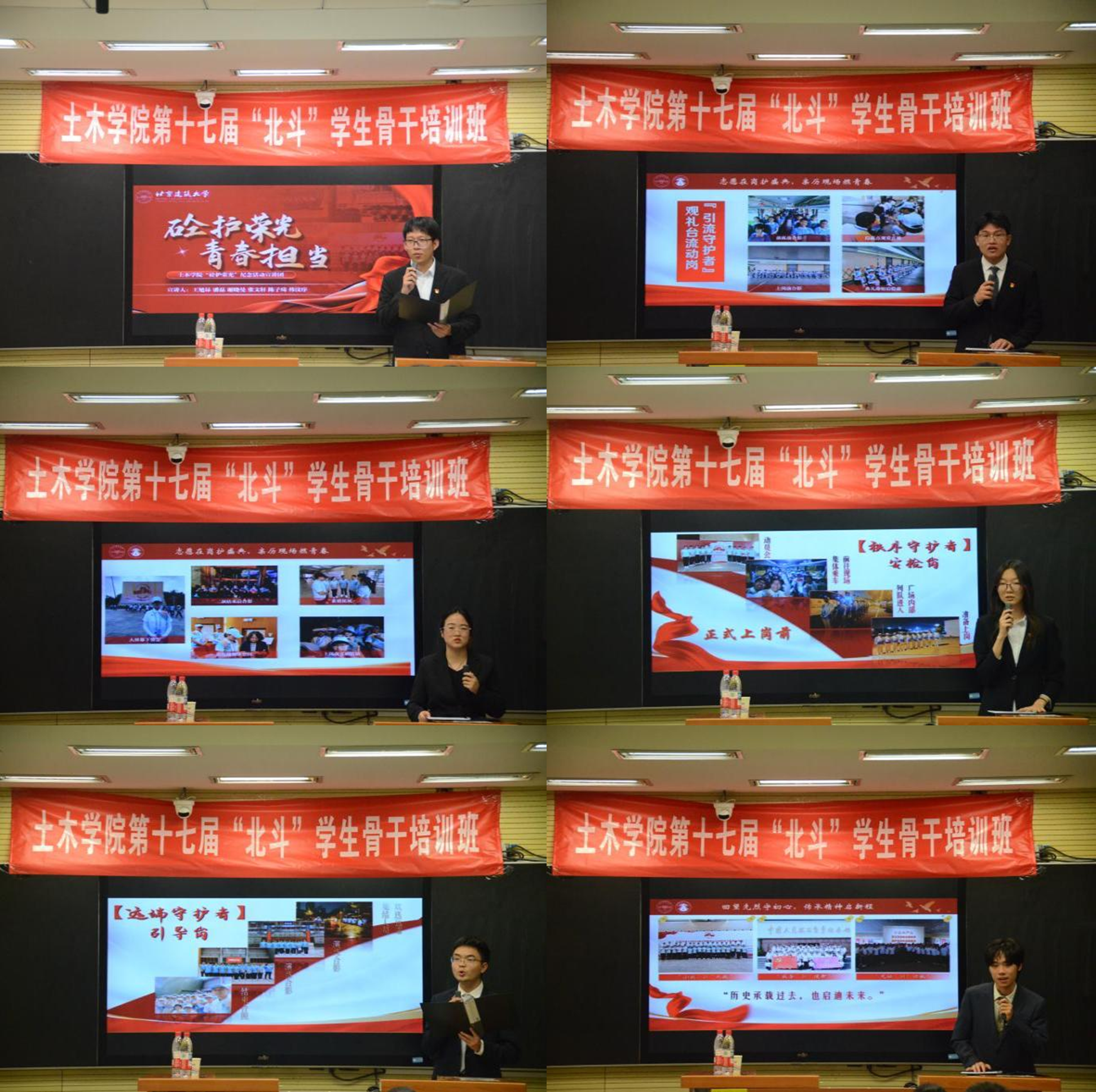 以“善友善学,积土木底蕴;敬人敬业,凝土木栋梁”为序章,第十七届“北斗”学生骨干培训班开班仪式暨首次课程圆满结束。本次活动有效地提升了学员的思想政治素养,促进了骨干间的交流,为土木学院未来团学工作的顺利开展奠定了坚实基础,也开启了新一期“北斗”学员追求卓越、服务奉献的青春征程。