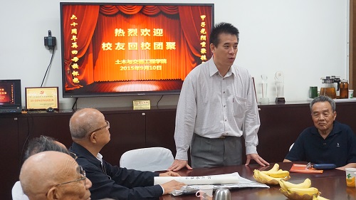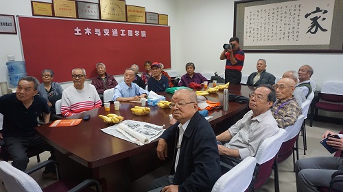 交流过程中,老校友张佩霖代表道三乙班做了发言说到,这次时隔几十年能够重回母校,心情别样地开心和激动,看完学院宣传片,切身感受到土木学院经过几代人的努力,实现的伟大发展,感受到土木学院为首都建设培养一代又一代人才卓越成绩和举足轻重的地位。今后,希望母校、希望土木学院,百尺竿头,更上一层楼,期望着土木学院为社会发展做出更加辉煌的贡献。