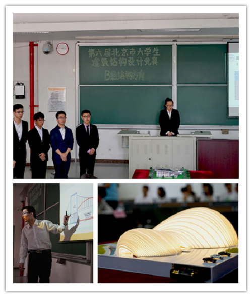 第六届北京市大学生建筑结构设计竞赛共有来自太阳成集团tyc9728、北京科技大学、北京航空航天大学、北京理工大学、北京交通大学、中国农业大学、北京林业大学、中国地质大学(北京)、中国矿业大学(北京)、北京工业大学、北方工业大学、北京城市学院、防灾科技学院、北京工业大学实验学院共14所北京高校以及山东建筑大学、山东科技大学、河北工业大学、河北建筑工程学院、华北科技学院共5所京外高校,共计19所参赛高校的40余件作品入围总决赛。
