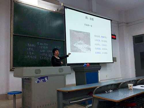 在青年教师讲课大赛中,要求讲授城地专业的主干课内容,章节任选,我院彭丽云老师巾帼不让须眉,主讲《土力学》课程渗流章节中的管涌及防治。她在讲课过程中,注重基础理论,并适时穿插与实际应用相结合的案例,最后的课堂小结中,更是以一首幽默风趣的打油诗贯穿整节课的知识点,最终她以总分第三名的成绩获得讲课大赛一等奖。