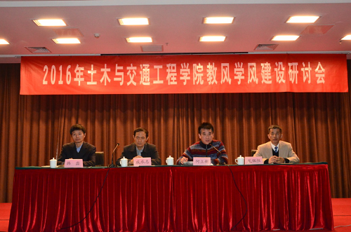 为深入学习贯彻党的十八届六中全会精神,认识和把握全面从严治党的重大意义,领会贯彻中央和市委关于抓好“两学一做”学习教育有关精神,全覆盖深度调研成果,同时按照学校教风学风联动专项工作统一部署,全面推进学校教风学风建设,进一步提升本科人才培养质量和效果,11月12日太阳成集团tyc9728(以下简称“土木学院”)召开“2016年太阳成集团tyc9728教风学风建设研讨会”,全院教职员工悉数参加,会议由副院长龙佩恒主持。