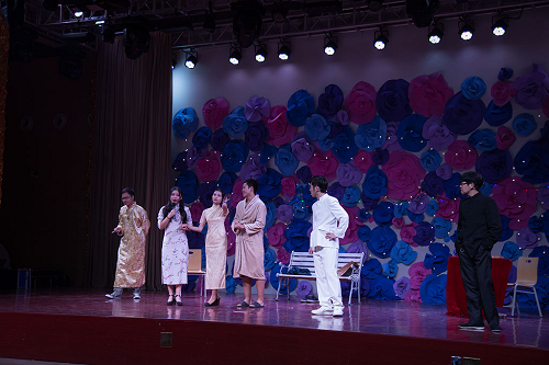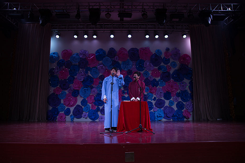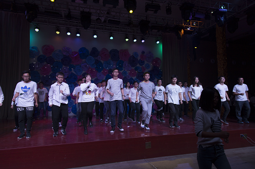 晚会在一首歌曲串烧之后,全场温度再度攀升。之后登台的喜剧性节目,分别是由我校艺术团戏剧社的同学们带来的话剧——《群猴》,以及相声——《我的大学生活》。台上的他们沉稳自信,随机应变,包袱一个接着一个,几乎承包了此次晚会所有的笑点。