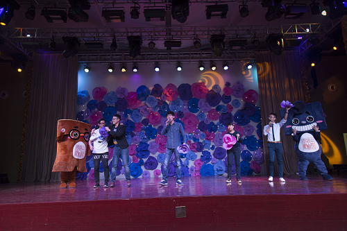 土木学院吉祥物——“方方”和“圆圆”,也首次登台,萌翻全场,和老师们一起在歌声中亮相。