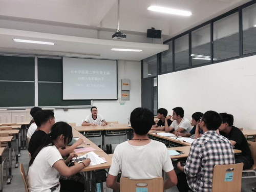 为深入学习贯彻习近平总书记系列重要讲话精神,进一步坚定理想信念,提高党性觉悟,加强对入党积极分子的考察工作。土木学院学生第二党支部于6月14日晚上在基A107开展“两学一做”学习交流会。