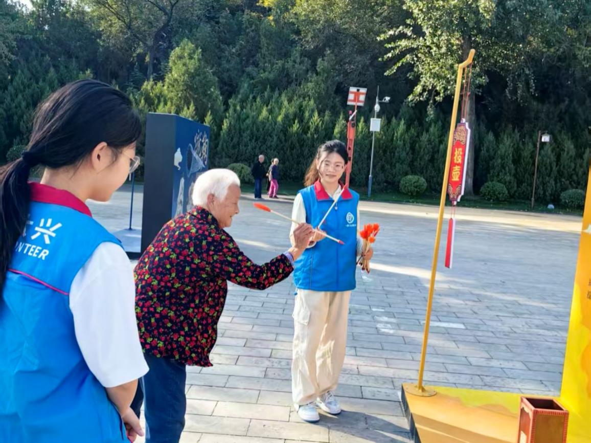 10 月 2 日,国庆中秋双节同庆,我在大兴团河行宫非遗雅集担任志愿者,协助游客体验投壶活动。我耐心给大家讲解规则、示范握矢姿势,能让大家在传统游戏中感受非遗魅力与节日氛围,还收获了游客们的真诚感谢,这份付出格外有意义。这个双节,因志愿与非遗的相遇而格外难忘!