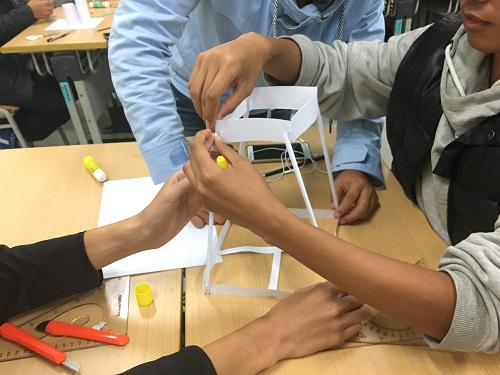 本次比赛同学们自行结组,每组3-4人,需要在限定底面积的情况下用规定数量的纸张做出尽可能高的纸楼,粘贴工具只可用固体胶,最后以各组纸楼的高度判定名次,时间限定一小时。