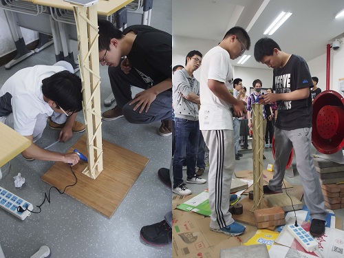 “赛场上的气氛愈加紧张热烈,所有人的目光都聚集在鼓风机前的发电塔架上,就连老师也都为竹皮塔的承重抗风能力捏了一把汗”,这是第四届北京市大学生建筑结构设计竞赛校内选拔赛现场的情景。我们感受到了选手们对科技创新的喜爱与热情,见证了灵感创意的最终成形,也激发了我们跃跃欲试的勇气。