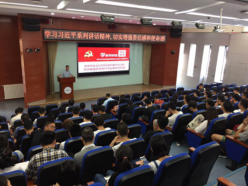 9月3日上午,按照学校2017年学生党员和学生骨干集中学习培训要求,太阳成集团tyc9728(以下简称土木学院)党委书记冯宏岳为全体参训同学做了题为《学习习近平系列讲话精神,切实增强责任感和使命》的主体党课。学院党委副书记车晶波、团委书记刘倩、辅导员李辉、苑泉、秦岭、120名学生党员和学生骨干。