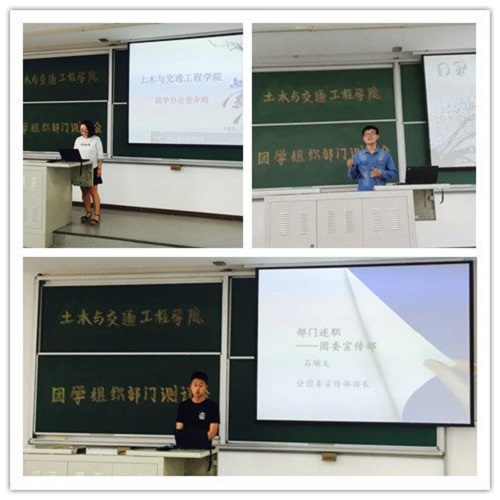 活动第一环节是土木学院团委、学生会、科协、青协、学霸联盟组织各部门进行展示,每位部长通过演示文稿,以演讲的方式向评委和观众们展示了部门的职能工作思路、具体措施和未来一年的计划。其中院学生会新闻宣传中心通过软件做了一个介绍本部门的短片,形式新颖独特,内容充实饱满,短片中的每一张照片,每一行文字,每一个笑脸都向观众们展示了这个部门强大的软件和部门内部凝聚力。学霸联盟带领同学们回顾了一学年中学霸们每一次授课经历,此外,在未来工作展望中,学霸联盟将开辟网上授课板块以及“毓秀讲堂”让学霸们方向他们的学习经验。