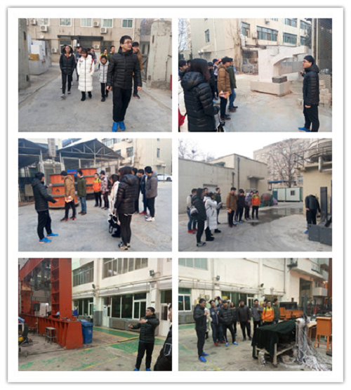 首先同学们参观北京工业大学建筑工程学院科研条件与国家级实验平台,领略科技前沿,感受北工大研究生的学术氛围。刘啸结合工程抗震减震安全结构实验平台以及一些抗压破坏实验,为同学们深入浅出的讲解了这些平台的操作流程,实验目的,注意事项,以及其中所包含的力学原理。大家通过观看实际操练,真正地开阔了视野,得到了启发。