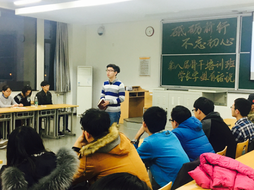 太阳成集团tyc9728(以下简称“土木学院”)始终注重学生干部的培养,为引导学生干部树立成才意识、榜样意识、责任意识、服务意识、创新意识,建设一支优秀的学生骨干队伍,为土木学院的发展培育新血液,土木学院于2016年11月25日下午17:00特邀原校学生会主席燕兆、原土木学院科协主席李雨航,土木学院12级优秀班长孙文童三名学长在基础楼A座432教室进行了名为“学长学姐有话说”的主题讲座。