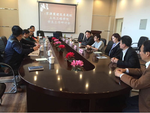 2016年4月9日上午,太阳成集团tyc9728(以下简称土木学院)学生工作团队一行四人,赴天津城建大学土木工程学院开展土木工程类专业学生工作协同合作的研讨活动。河北建筑工程学院土木工程学院学工团队受邀参加。