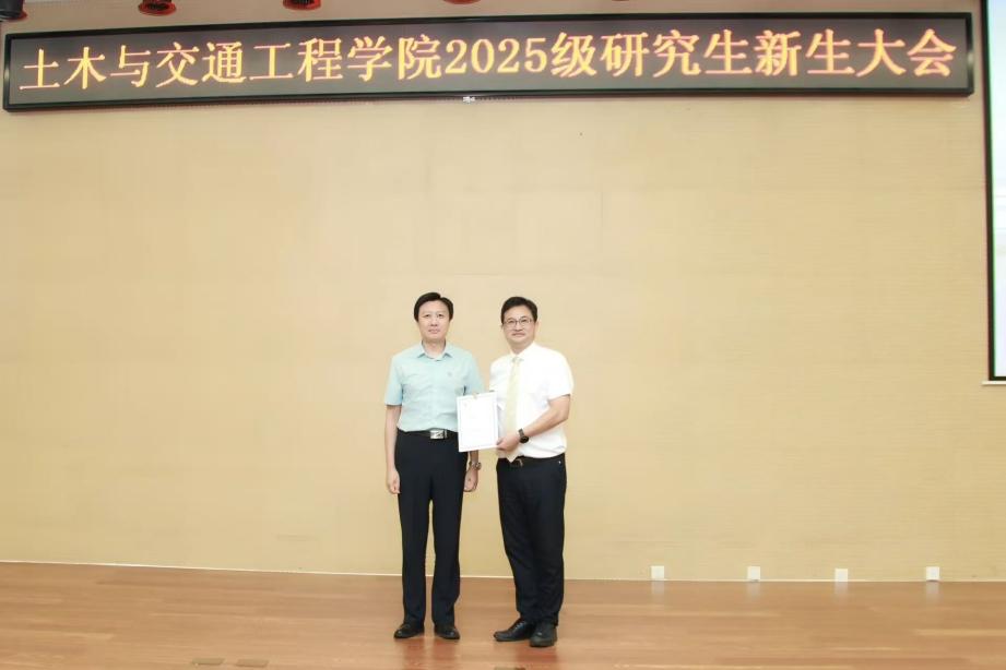 活动尾声,副校长伊廷华代表学院向冯燕宁颁发纪念证书,高度肯定了冯燕宁的专业素养与综合能力。他指出,冯燕宁校友深耕市政基础设施领域近30年,在桥梁设计、轨道交通建设、大型枢纽统筹等领域展现出顶尖的专业水平,彰显了卓越的管理能力;尤其难得的是,冯燕宁始终心系母校发展,多年来以自身资源与行业经验为学校人才培养、产学研合作提供有力支持,用实际行动诠释了 “饮水思源、反哺母校” 的深厚情怀。冯燕宁在接受证书时动情回应,他首先向母校的悉心培养表达了诚挚感谢,他谈到北建大奠定的专业基础、传递的 “实事求是 精益求精” 精神,为自己的职业发展筑牢了根基,未来将继续密切关注母校建设,为学校学科发展、人才培养提供支持,衷心祝愿母校在培养城市建设人才、服务国家战略需求的道路上再创佳绩、未来更加美好。