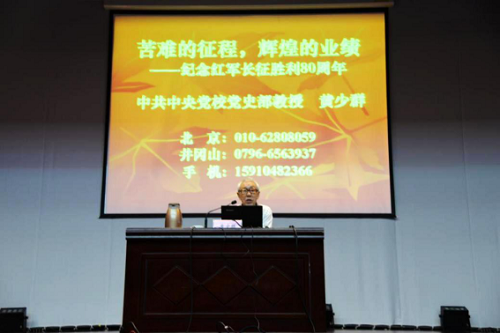 8月9日上午8:30,全体学员在基地综合楼报告厅听取了“苦难的征程,辉煌的业绩——纪念红军长征胜利80周年”专题讲座。黄少群老师从长征的历史背景、重大事件、胜利原因等几个方面对长征进行了深入剖析。