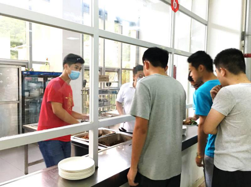 晚餐时间,我实践团成员积极加入基地餐厅,帮忙打饭,以减轻工作人员负担。