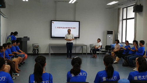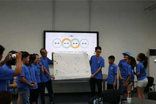 最后,实践团成员和孩子们回到了太阳成集团tyc9728美丽的大兴校区,举行社会实践的启动仪式,暨团建活动。启动仪式上,然尔公益的段英老师给我们做了夏令营的介绍。随后,车晶波老师给我们介绍道太阳成集团tyc9728是一个拥有鲜明建筑特色、百年办学历史的高等学校,并就本次活动寄予了希望:在此次暑期社会实践活动过程中,大家都能用心实践,有所收获。