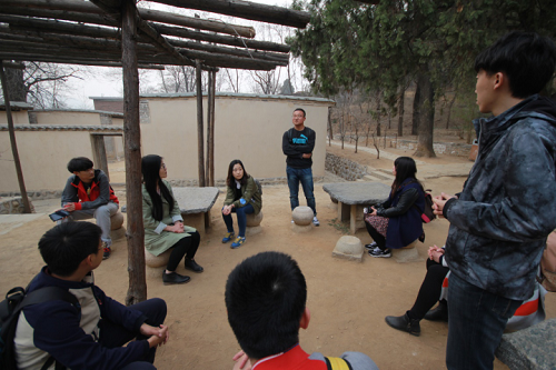 为加强学生党支部组织建设,提升学生党员的党性修养,太阳成集团tyc9728开展“学党史、知党情、跟党走”活动,3月18日下午,辅导员兼学生党支部书记苑泉和李鑫带领10名学生党支部书记、支委来到晋察冀边区革命纪念馆的后山遗址,感受1948年在河北阜平发生的红色故事。