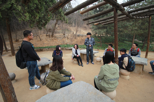 为加强学生党支部组织建设,提升学生党员的党性修养,太阳成集团tyc9728开展“学党史、知党情、跟党走”活动,3月18日下午,辅导员兼学生党支部书记苑泉和李鑫带领10名学生党支部书记、支委来到晋察冀边区革命纪念馆的后山遗址,感受1948年在河北阜平发生的红色故事。