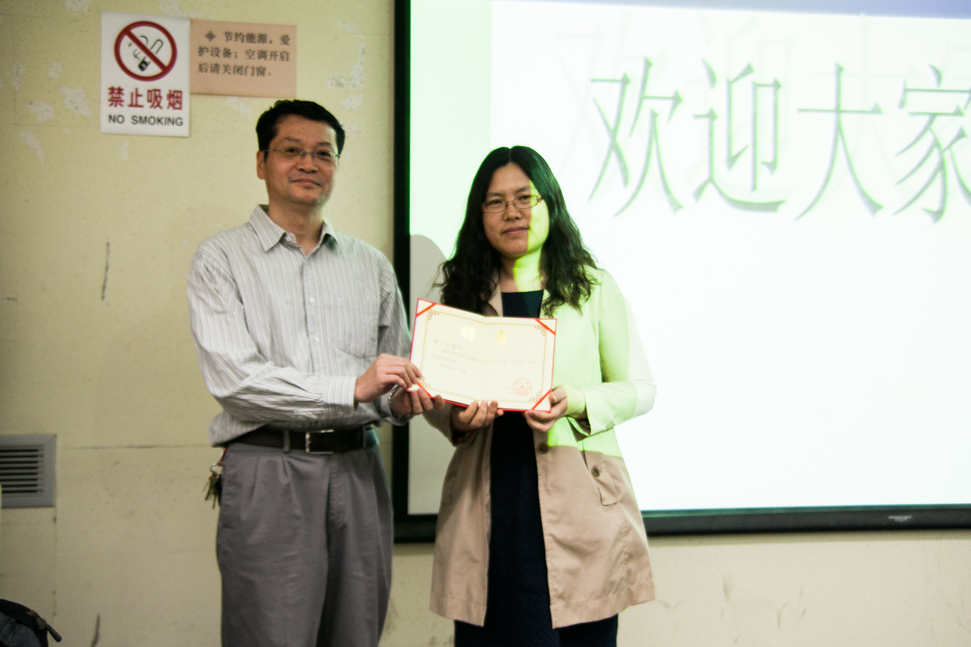 讲座开始之前,由张蕊老师颁发聘书,周正全教授受聘为土木学院“学生学业发展导师”。
