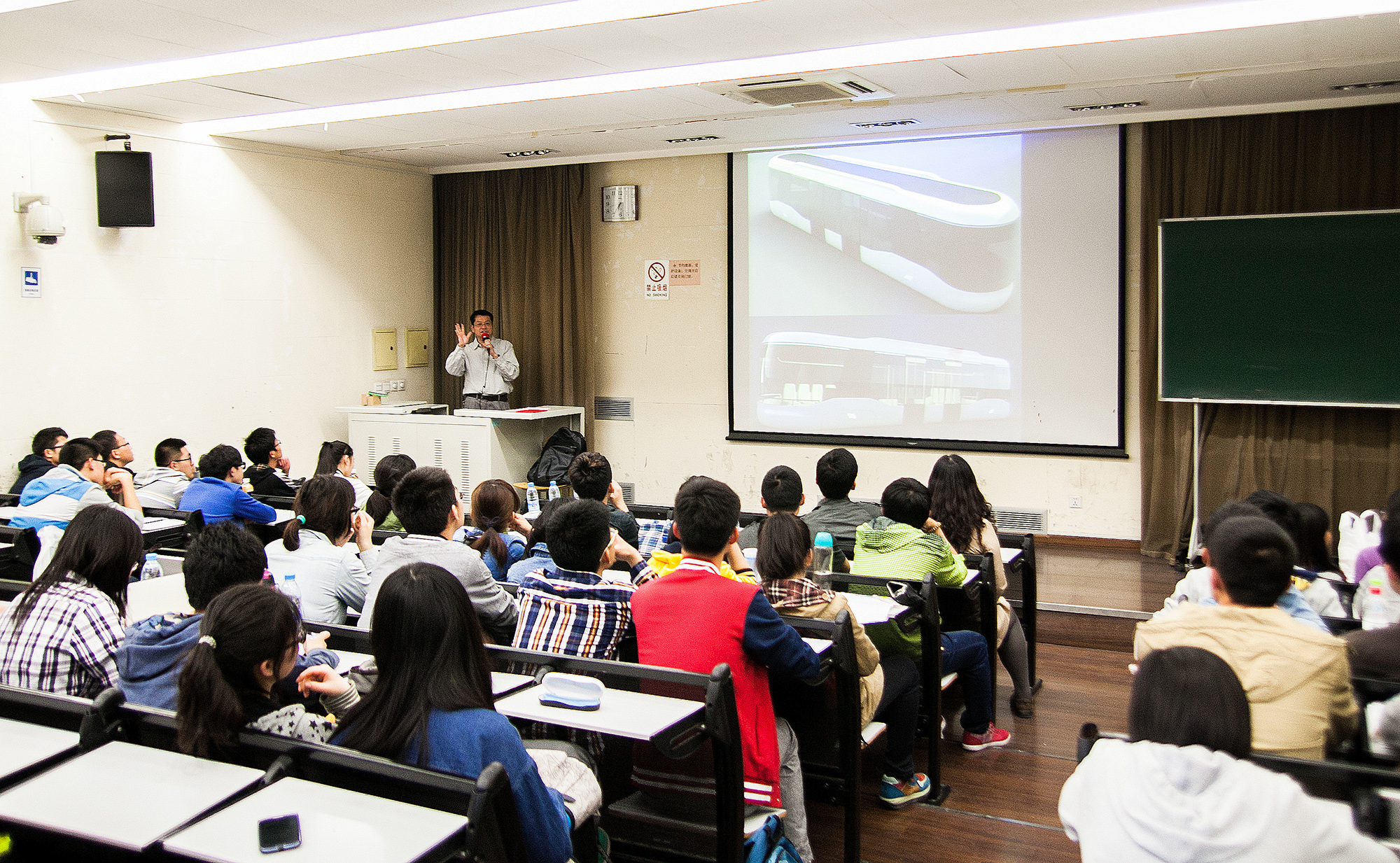 讲座中,周正全教授非常生动的展示了国内外各类新式公共交通的车辆设计理念和与之相对应的概念产品。“在基本交通出行需求日益得到满足的同时,人们对于出行舒适性、便捷性以及安全性的追求不断提高,如何更加有效的节约时间、空间也日益得到人们的重视,这也使得国内外工程师们努力研发新技术并将其利用到公共交通领域”,周正全教授说到。在周正全教授展示的创新思维案例中,对于车辆和新式轨道的设计层出不穷,信息和网络技术的应用也被融合到未来交通之中,新能源开发和如何加强能源利用率方面的创新更是不胜枚举。可以预见的是,各类新技术的发展和新能源的使用会为整个公共交通领域的蓬勃发展带来巨大的动力和发展空间。而对于出行者来说,不断完善和提升的信息与网络技术更能改变我们的出行方式与出行理念。