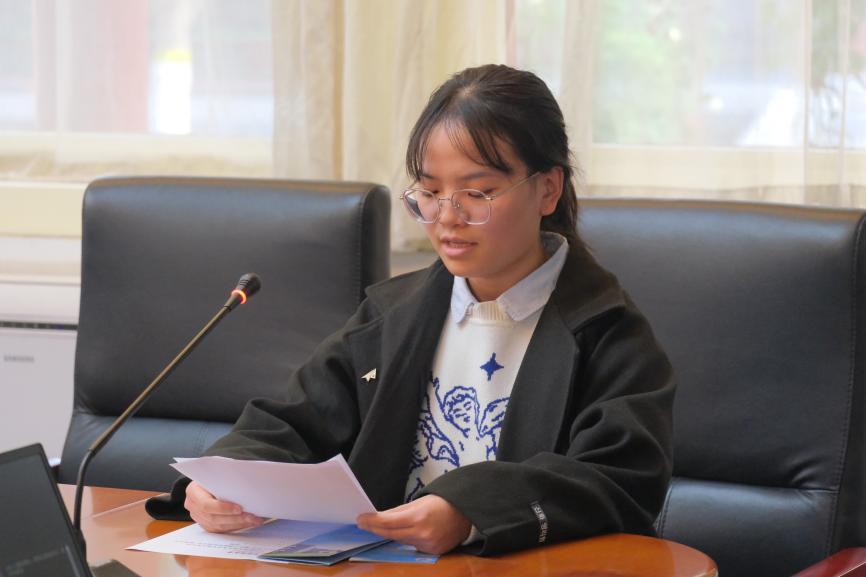 奖学金获奖学生代表、道桥202班李惠敏同学发言,她表示要带领同学们向道78级的优秀前辈校友们学习,在未来学习中将练就过硬本领,勇担时代重任、服务国家建设、奉献社会发展。